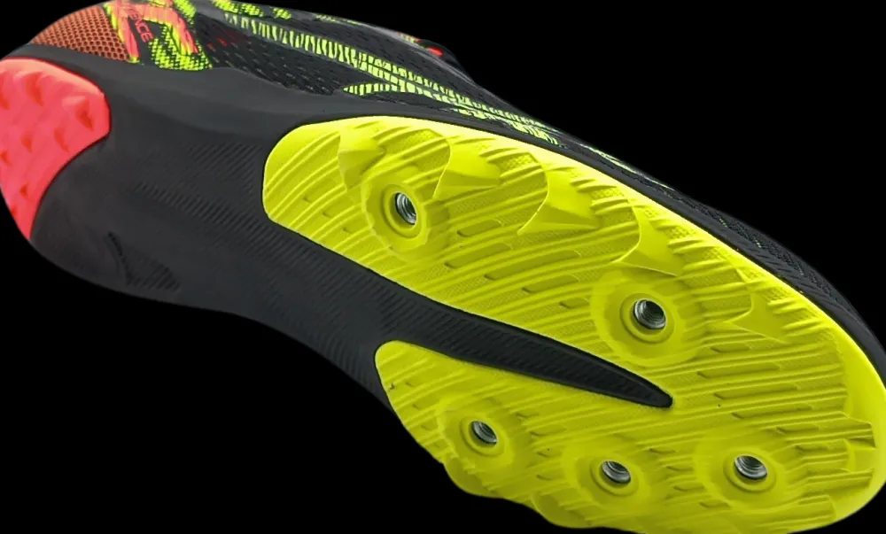 Stevige hielkuip voor steun en de zool met flytefoam geeft meer comfort bij het hardlopen. Wat extra grip bij de hiel en onder de voervoet van deze spikes.