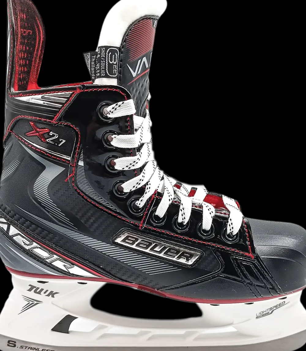 De Bauer Vapor X 2.7 ijshockeyschaatsen zijn geschikt voor al verder gevorderde schaatsers of ijshockeyers. Deze Bauer ijshockeyschaatsen zijn breder dan normaal. Dankzij het comfort flex systeem ervaart u instapcomfort en extra flex. Ook dankzij het 3D Polycarb bovenwerk en de voering van microvezel zijn het echte comfortabele ijshockeyschaatsen. De tong van de schaatsen heeft een middenvoet beschermer voor het geval er een ijshockey puck tegenaan komt.