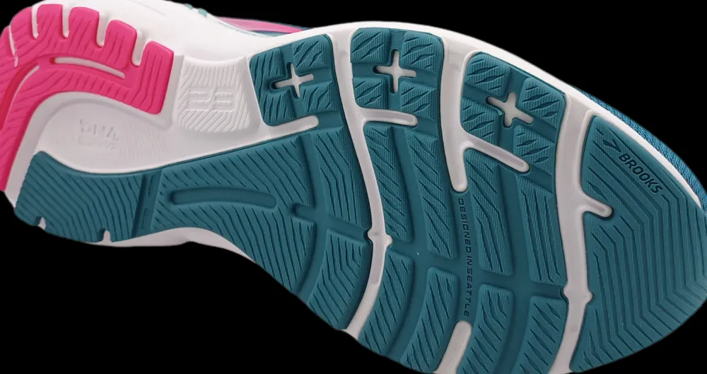 Brooks gebruikt ook bij deze Adrenaline GTS 23 het GuideRails systeem: extra steun om overproneren te beperken.