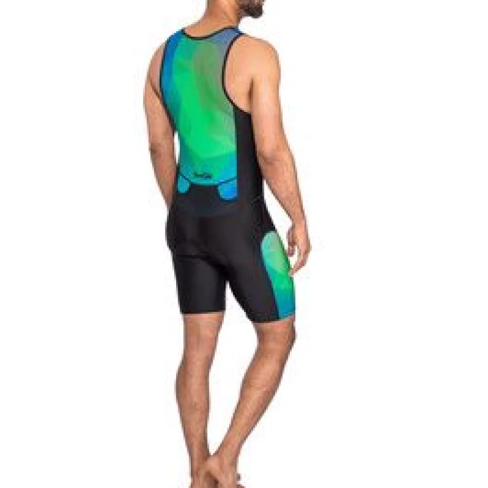 Deze funky design tri-suit laat je opvallen in de menigte. Het is perfect voor triatlon- en andere sporten en maakt gebruik van de nieuwste innovaties van Dare2Tri om een perfecte pasvorm te garanderen zonder beperkingen. Voorzien van comfortabele vulling en 2 lage achterzakken.