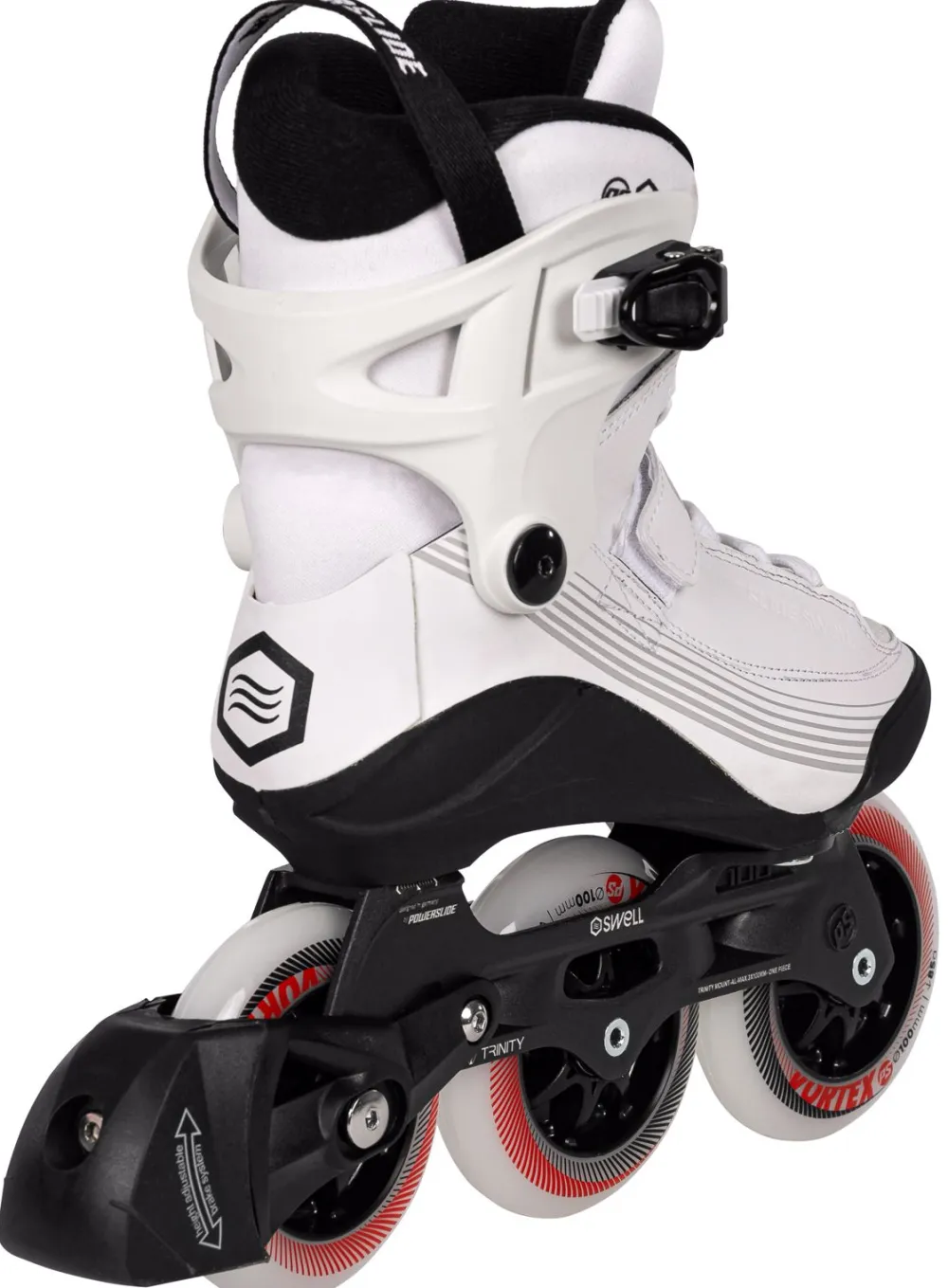 De Powerslide Swell Stellar Jr. 100 is een eersteklas skate voor kinderen, perfect uitgebalanceerd met een kort Triskate-frame van 205 mm en een wielopstelling van 100 mm. Dit betekent puur plezier en spanning voor de junioren. Het bovenwerk is gemaakt van stretch Powerknit-materiaal inclusief veters die zich als een tweede huid om de voet wikkelen. TRINITY-montage, Elite gegoten aluminium frame en nieuwe Powerslide Swell-wielen met onze racecompound maken deze skate tot het gesprek van de stad. Slechte lagers en een in hoogte verstelbaar remsysteem (HABS-rem) zorgen ervoor dat je snel gaat of je stopt wanneer je maar wilt. Om met de voeten mee te groeien, is de voering verkrijgbaar in twee maten en kan deze perfect worden aangepast aan de vorm van de voet om controle en groei te geven