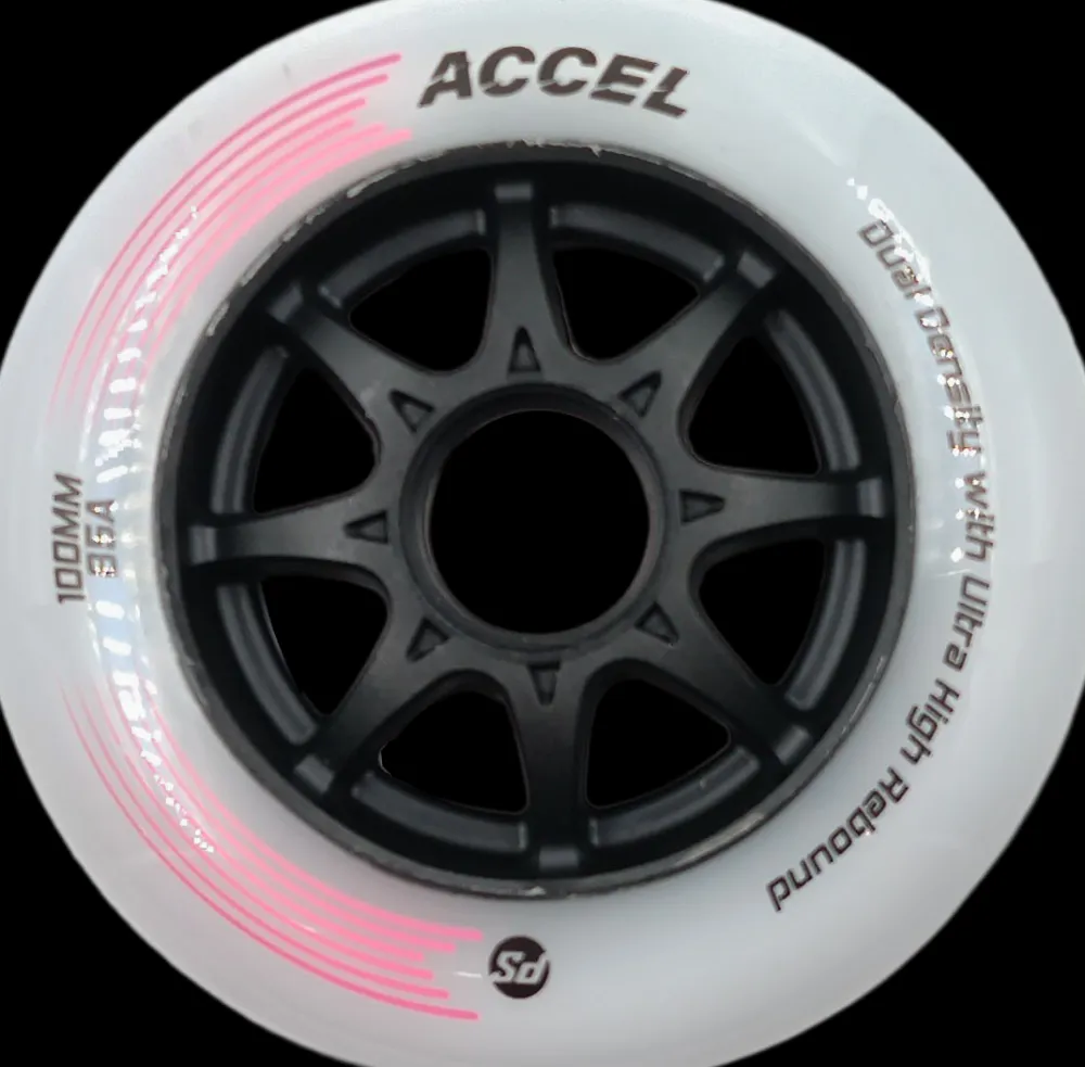 ACCEL-wielen zijn de nieuwe trainingswielen met dubbele dichtheid voor racen. Met behulp van de Ultra High Rebound (UHR) in 85A hardheid geven deze wielen je een fijne grip en een geweldige flex om op hoge snelheid te trainen.