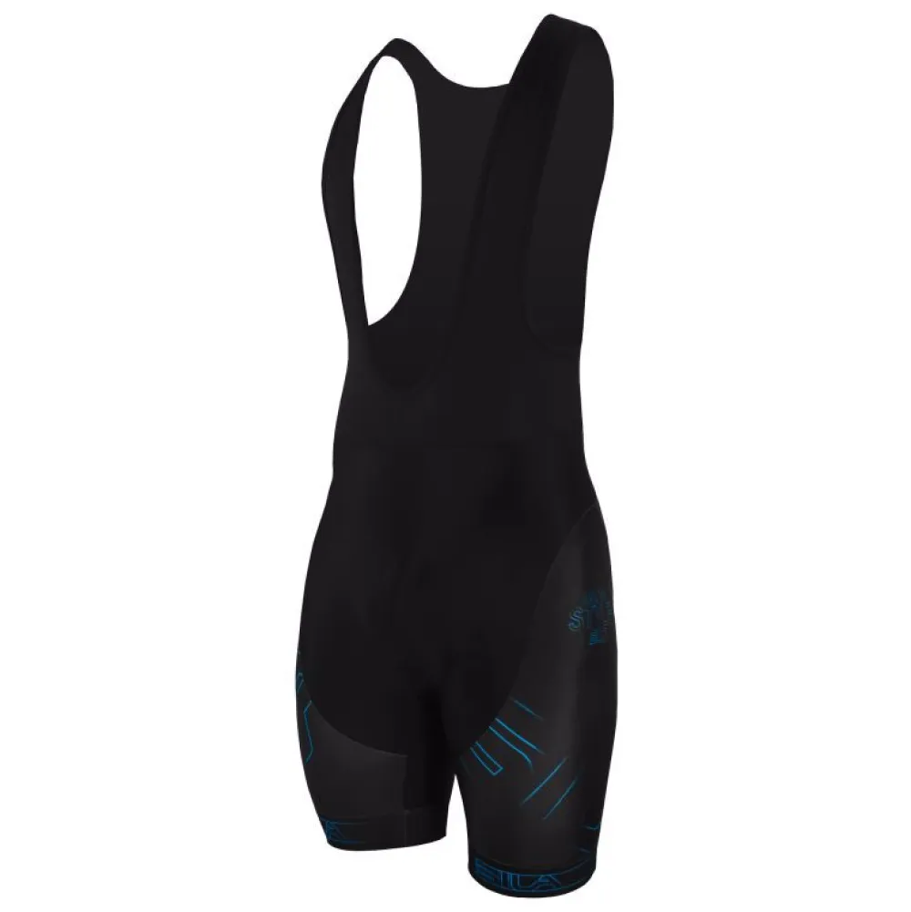 Een mooi afgewerkte lycra broek met bretels. De broek heeft op de broekspijp een kleuraccent. Er zitten ventilatiegaatjes in de schouders en bovenrug.