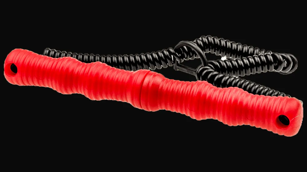 2 stevige handvatten, elk met 2 roestvrijstalen pinnen en een verbindingskoord.